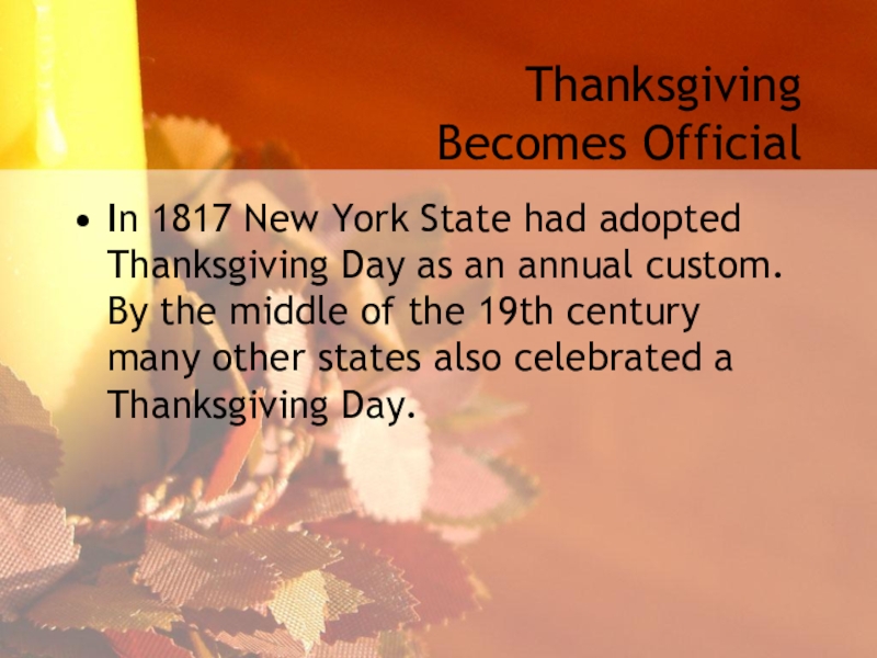 as an annual custom. By the middle of the 19th century many other states also celebrated a Thanksgiving Day.