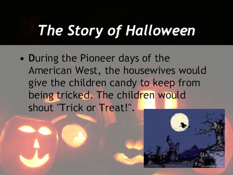 the housewives would give the children candy to keep from being tricked. The children would shout "Trick or Treat!".