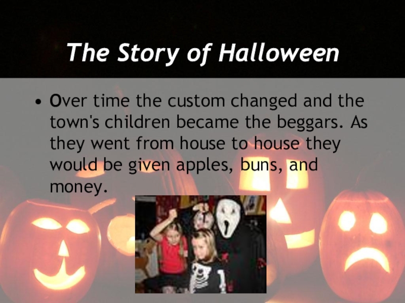 children became the beggars. As they went from house to house they would be given apples, buns, and money.