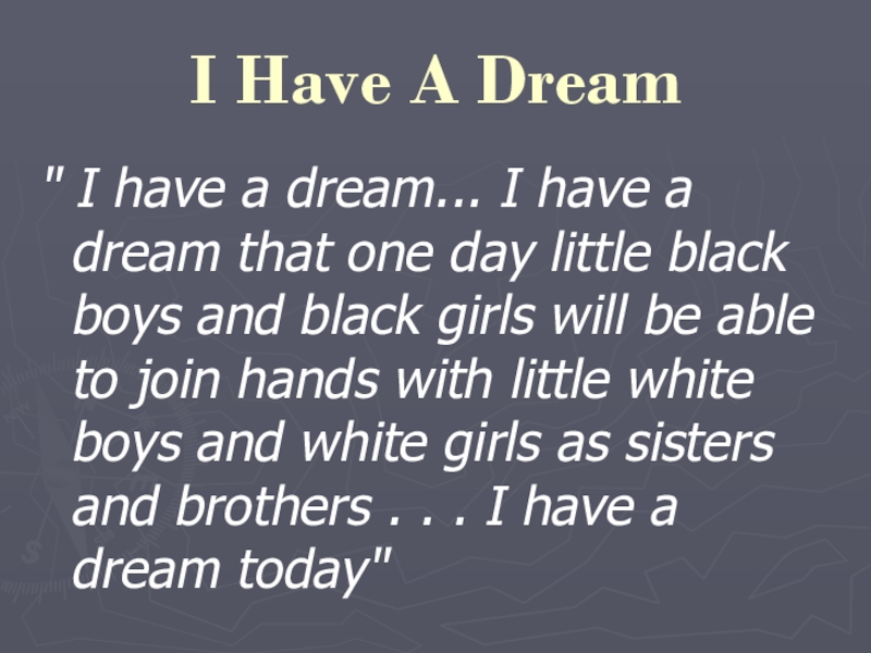 dream that one day little black boys and black girls will be able to join hands with little white boys and white girls as sisters and brothers . . . I have a dream today"