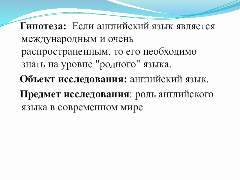Слайд 3 Гипотеза: Если английский язык является международным и очень распространенным, то