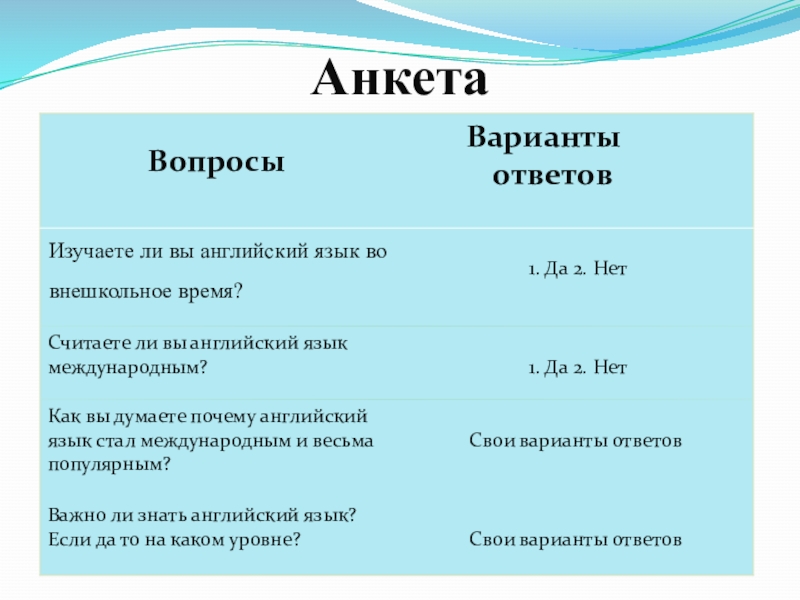 Слайд 5Анкета