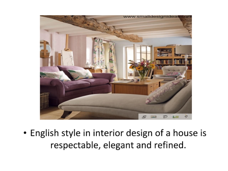 Слайд 5English style in interior design of a house is respectable, elegant