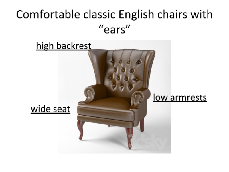 Слайд 8Comfortable classic English chairs with “ears”