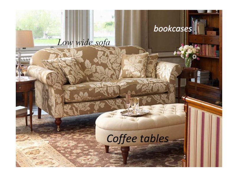 Low wide sofabookcasesCoffee tables