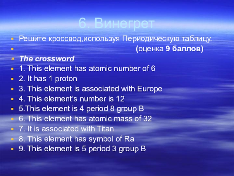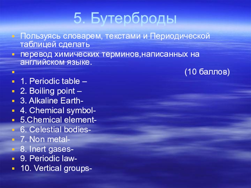 Пользуясь словарем, текстами и Периодической таблицей сделать