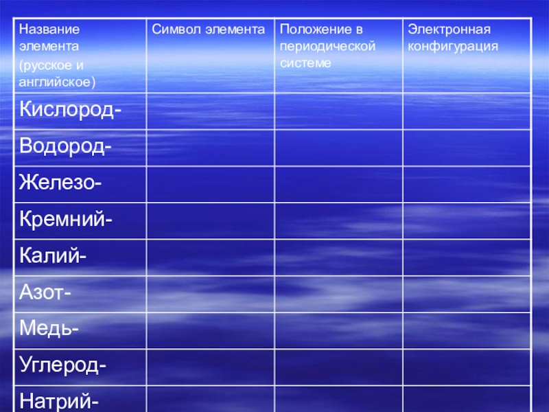 Необходимо внести информацию об элементе в таблицу (9 баллов). Для