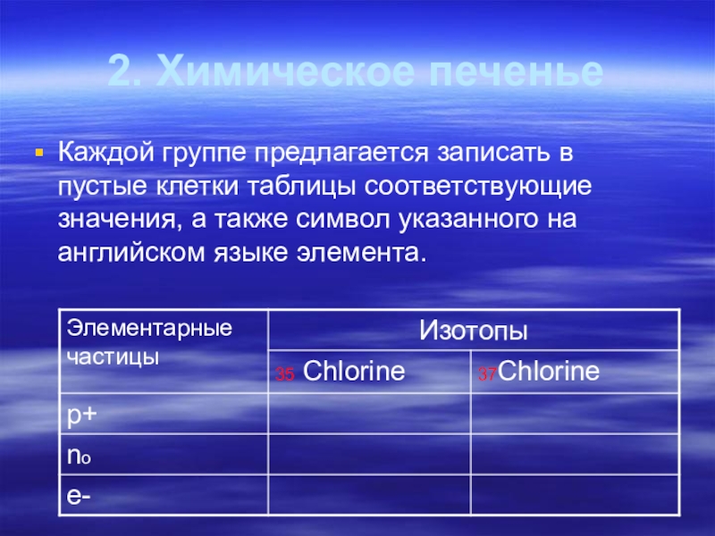 выполнения задания использовать Периодическую таблицу. 3 мин. Отводится на заполнение таблицы и 1 мин. – на озвучивание ответов.