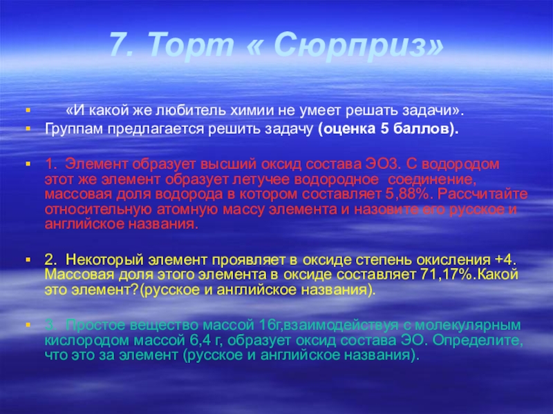 1. Элемент образует высший оксид состава ЭО3. С водородом этот же элемент образует летучее водородное соединение, массовая доля водорода в котором составляет 5,88%. Рассчитайте относительную атомную массу элемента и назовите его русское и английское названия.