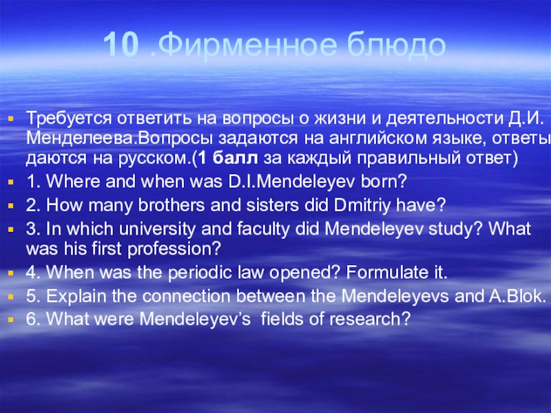 Требуется ответить на вопросы о жизни и деятельности Д.И.Менделеева.Вопросы