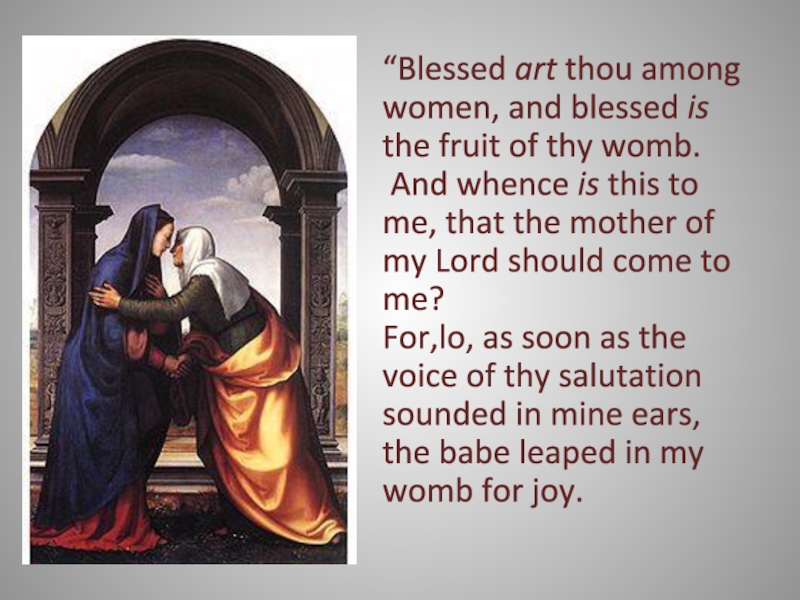 For,lo, as soon as the voice of thy salutation sounded in mine ears, the babe leaped in my womb for joy.