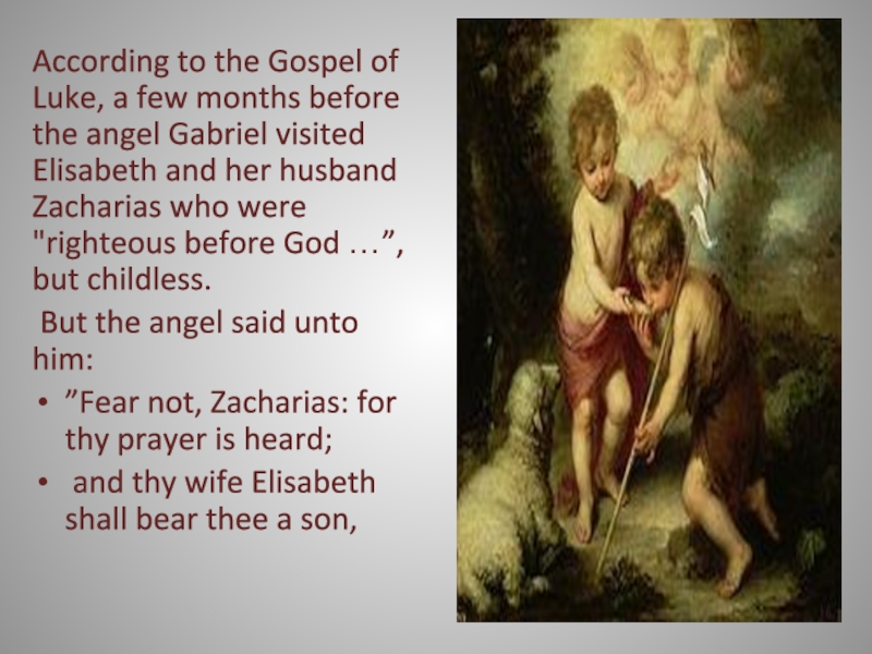 angel Gabriel visited Elisabeth and her husband Zacharias who were "righteous before God …”, but childless.