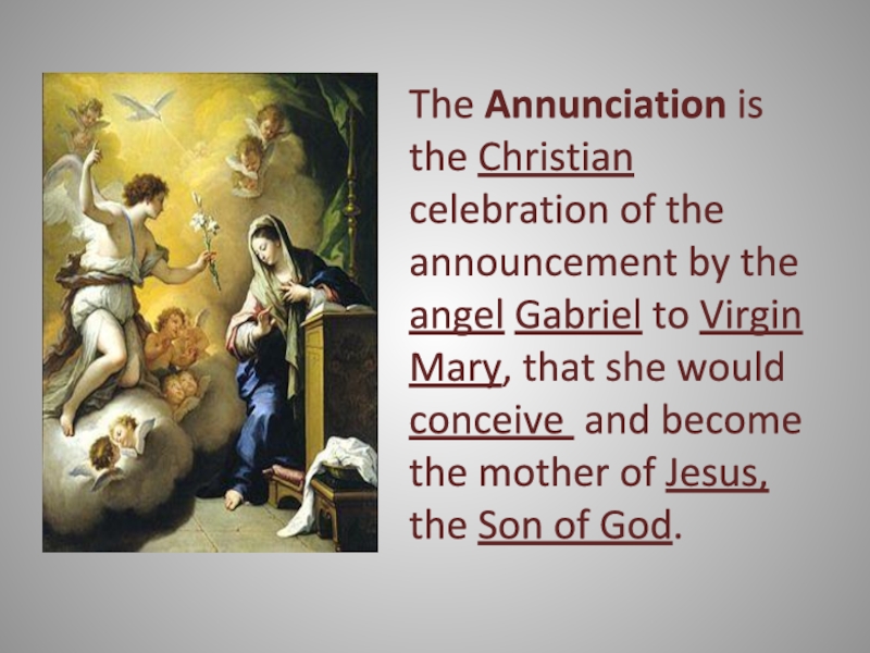 Слайд 2The Annunciation is the Christian celebration of the announcement by the