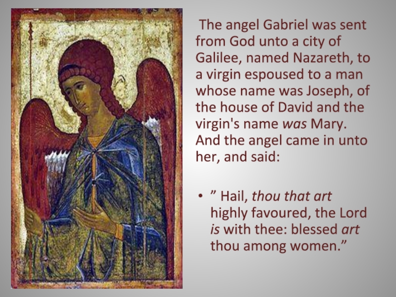 Слайд 3 The angel Gabriel was sent from God unto a city