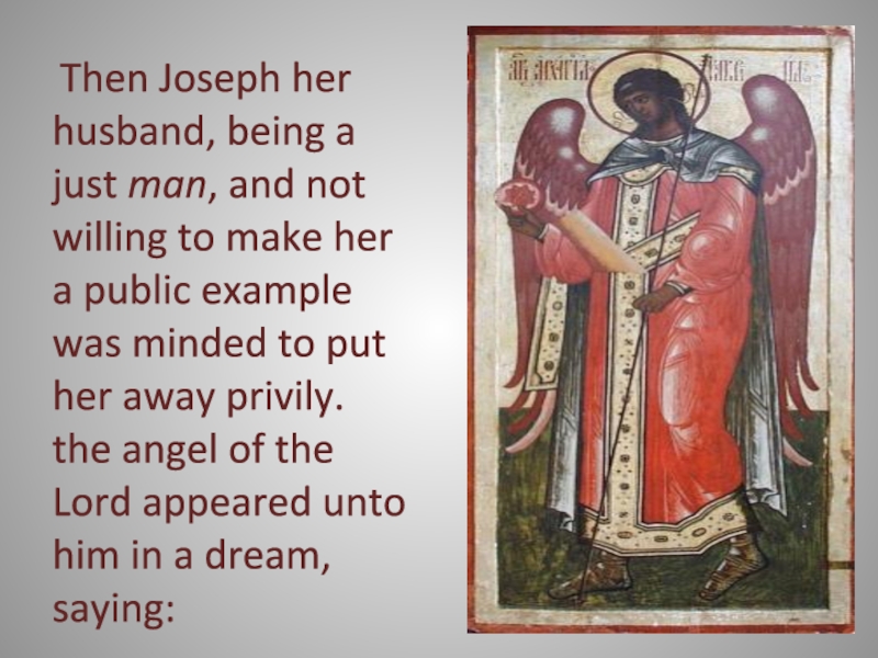 Слайд 8 Then Joseph her husband, being a just man, and not