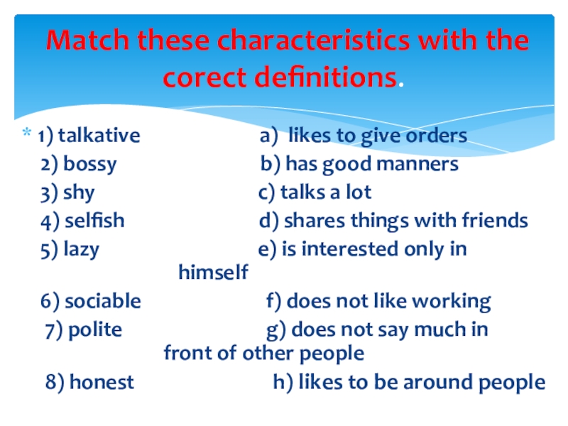 Match these characteristics with the coreсt definitions.