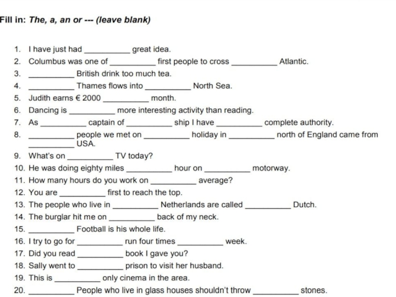 Презентация, доклад по английскому языку артикль
