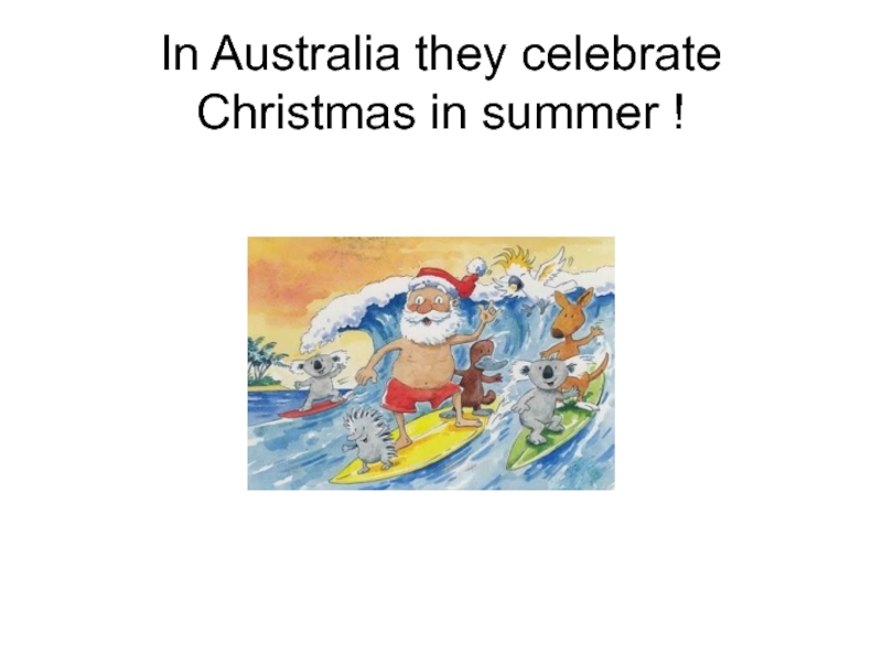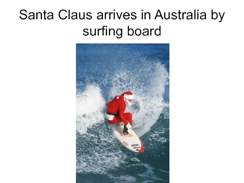 Слайд 8Santa Claus arrives in Australia by surfing board