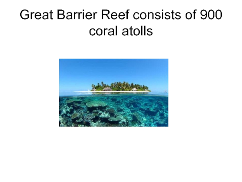 Слайд 23Great Barrier Reef consists of 900 coral atolls
