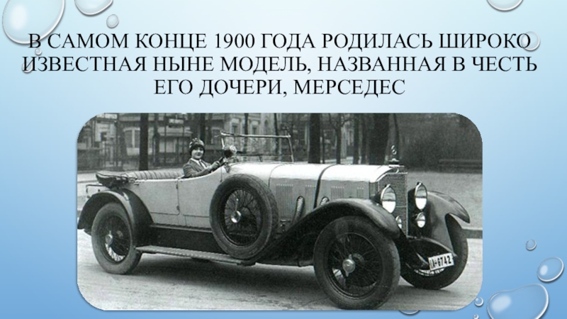 В самом конце 1900 года родилась широко известная ныне модель, названная в честь его дочери, Мерседес