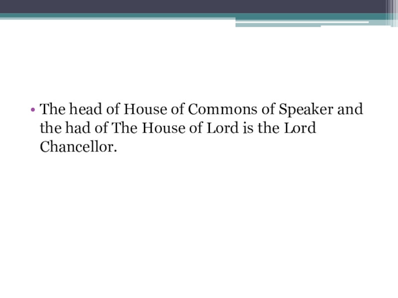 Слайд 5The head of House of Commons of Speaker and the had