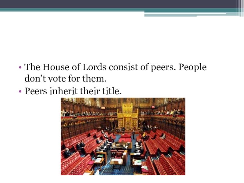 Слайд 4The House of Lords consist of peers. People don’t vote for