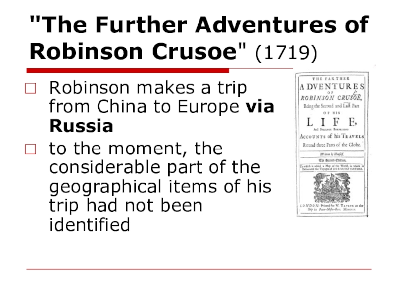 Слайд 9"The Further Adventures of Robinson Crusoe" (1719)