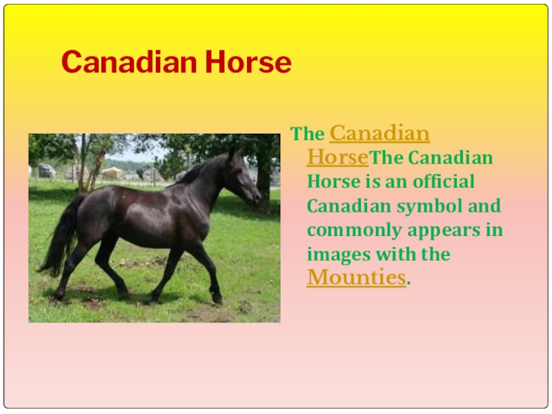 The Canadian HorseThe Canadian Horse is an official Canadian symbol