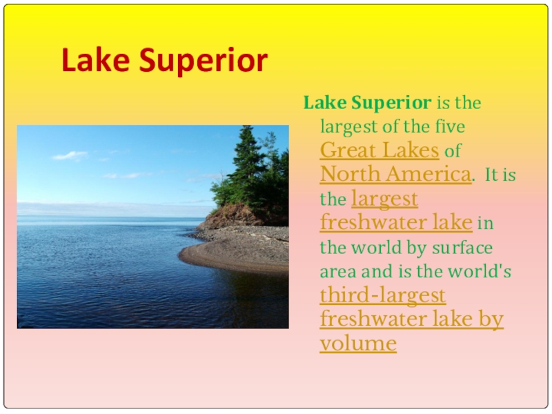 of North America. It is the largest freshwater lake in the world by surface area and is the world's third-largest freshwater lake by volume