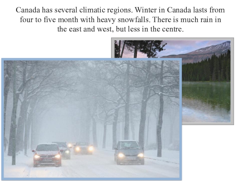 Слайд 4 Canada has several climatic regions. Winter in Canada lasts from four