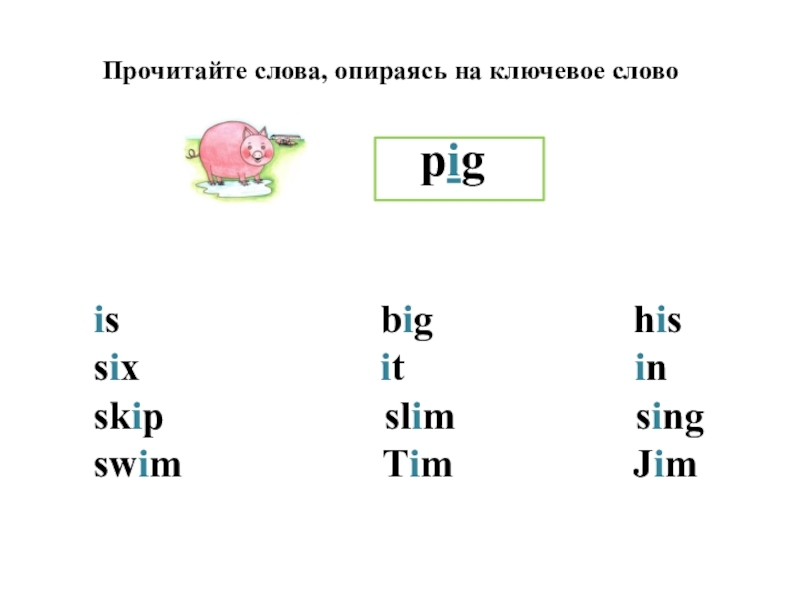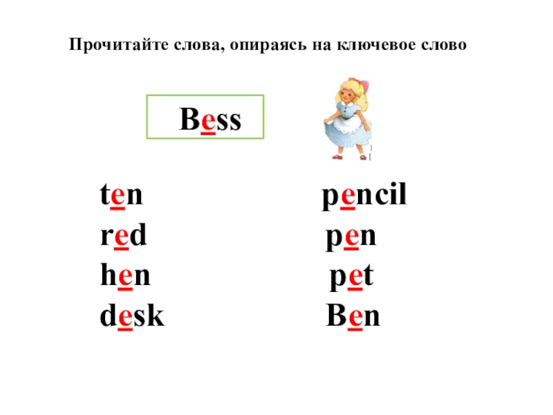 сan,pen,sit, ten, bad, swim, rabbit, cab, skip, pencil, Bess, dad, Ben, sad, hen, fat, pet, bag, hat, is, has, desk, and, big, Bill.