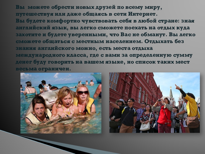 Слайд 6Вы можете обрести новых друзей по всему миру, путешествуя или даже общаясь в
