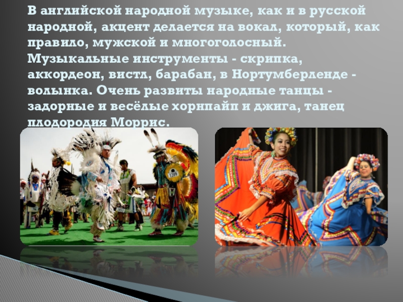 Слайд 10В английской народной музыке, как и в русской народной, акцент делается