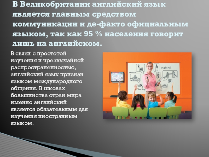 Слайд 9В Великобритании английский язык является главным средством коммуникации и де-факто официальным
