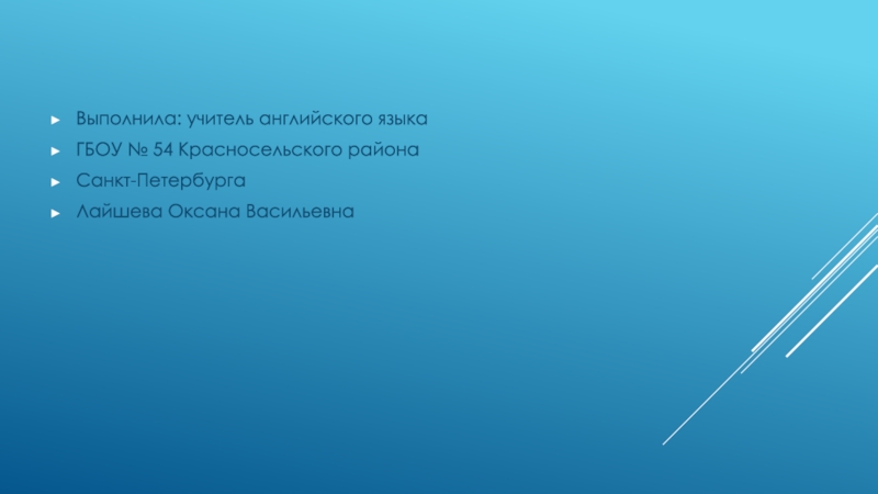 Выполнила: учитель английского языкаГБОУ № 54 Красносельского районаСанкт-ПетербургаЛайшева Оксана Васильевна