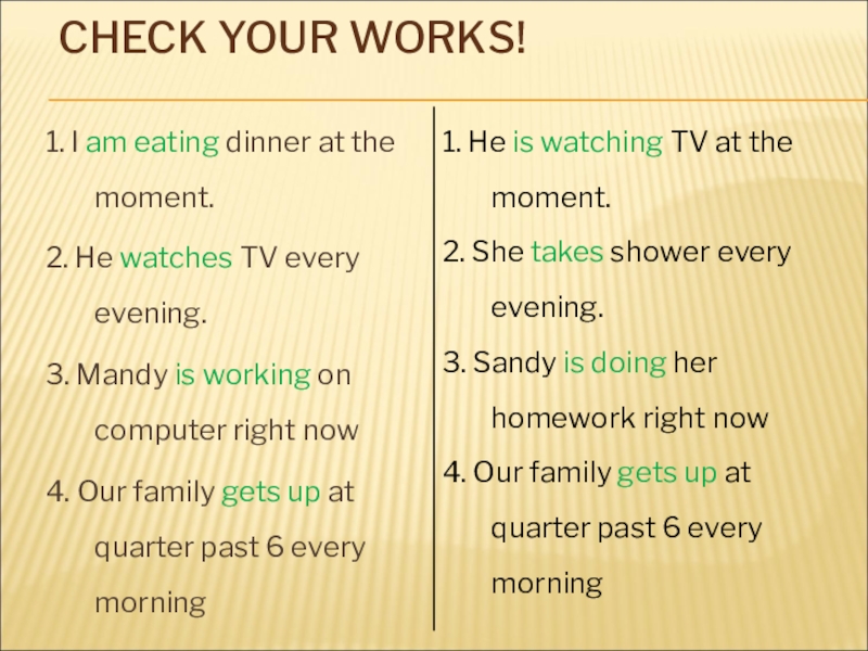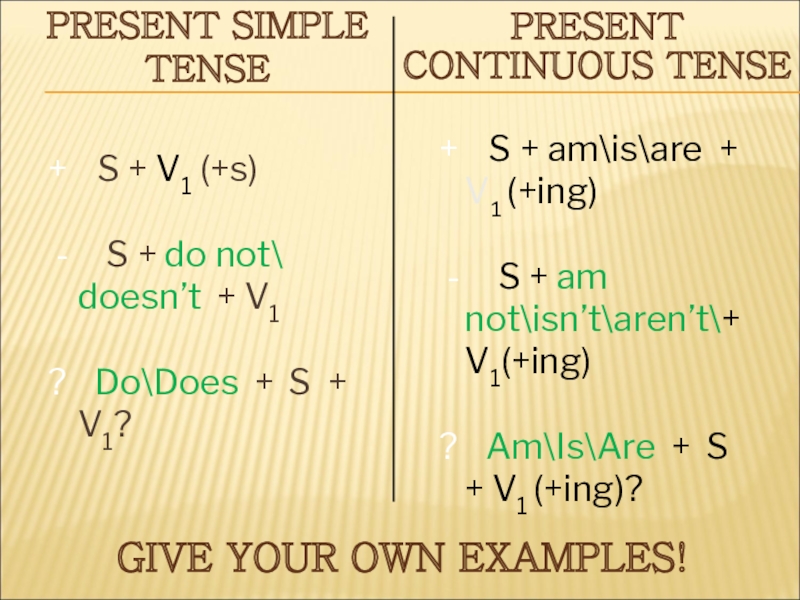 - S + am not\isn’t\aren’t\+ V1(+ing)