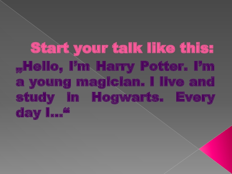 Start your talk like this:„Hello, I’m Harry Potter. I’m a young magician. I live and study in
