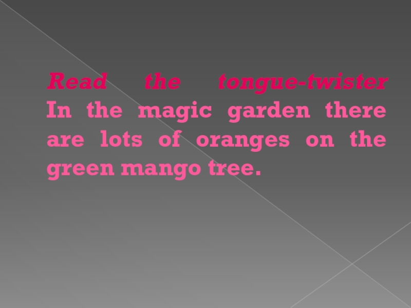 Слайд 3Read the tongue-twister In the magic garden there are lots of oranges