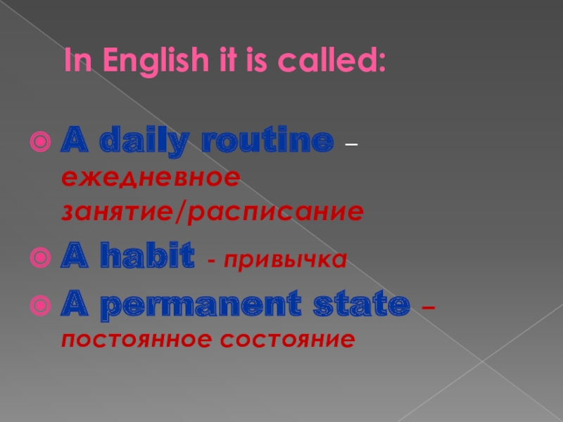 In English it is called:A daily routine – ежедневное занятие/расписаниеA habit - привычкаA permanent state – постоянное
