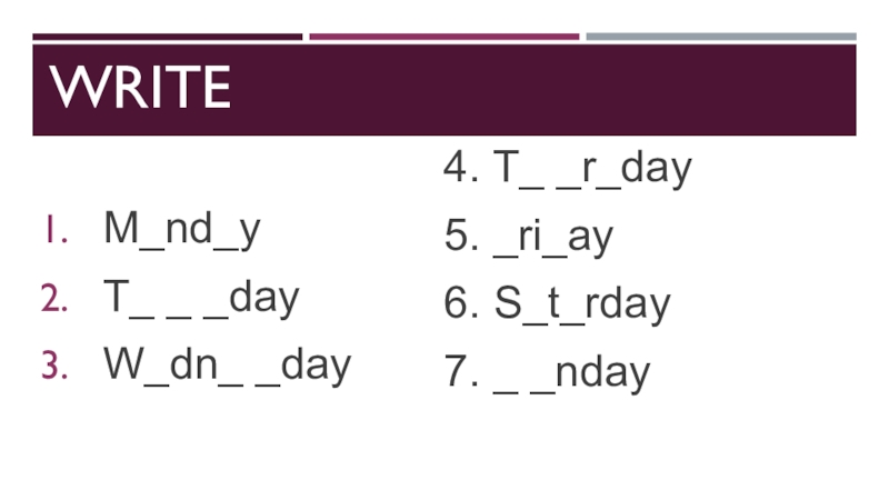 WriteM_nd_yT_ _ _dayW_dn_ _day4. T_ _r_day5. _ri_ay6. S_t_rday7. _ _nday