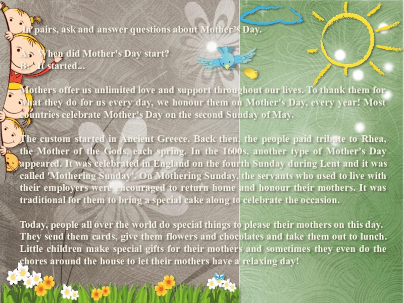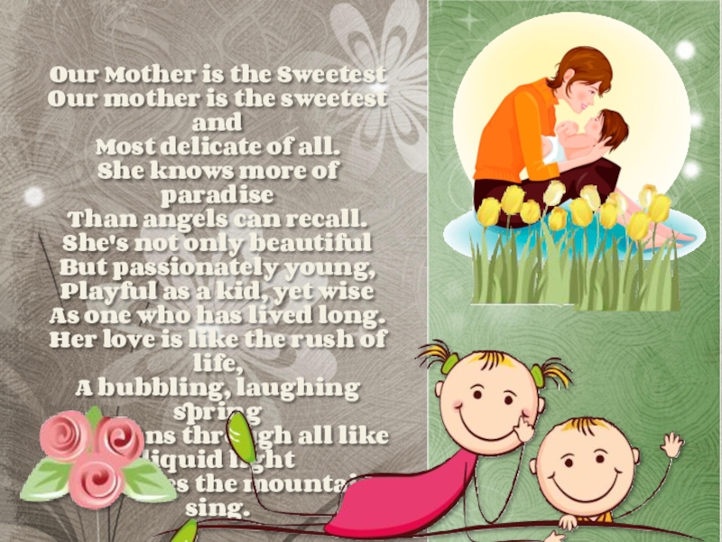 awesome, brunch, candy, celebrate, chocolate, flowers, hugs, love, mother, nurture, present, wonderful