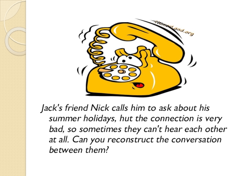 Jack's friend Nick calls him to ask about his summer holidays, hut the connection is very bad,