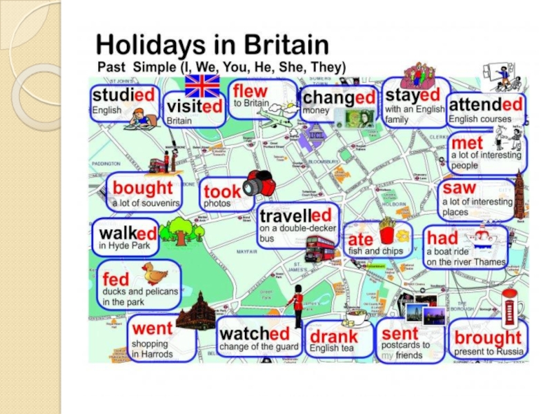 Give the Past Simple form of the verbs (Ved/2). To stay, to attend, to have, to travel, to take, to get, to visit, to see, to go, to meet, to spend, to share, to stay,