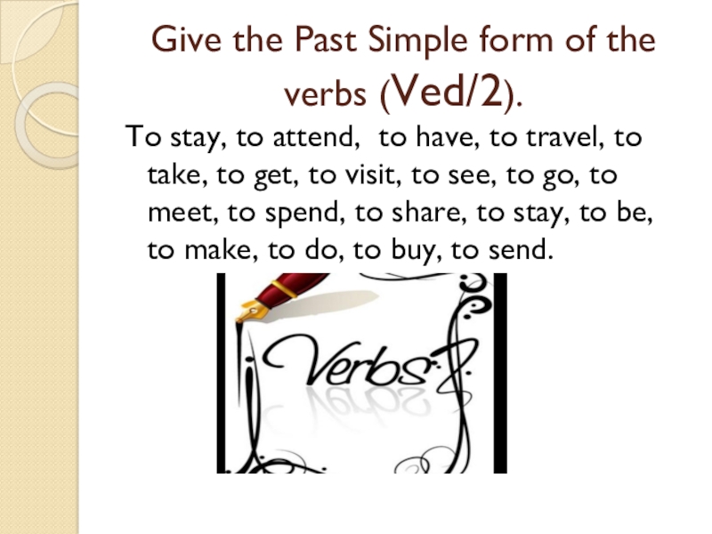 Слайд 2 Give the Past Simple form of the verbs (Ved/2).