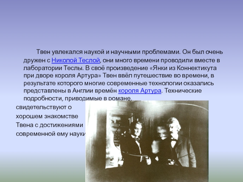 Слайд 19 Твен увлекался наукой и научными проблемами.