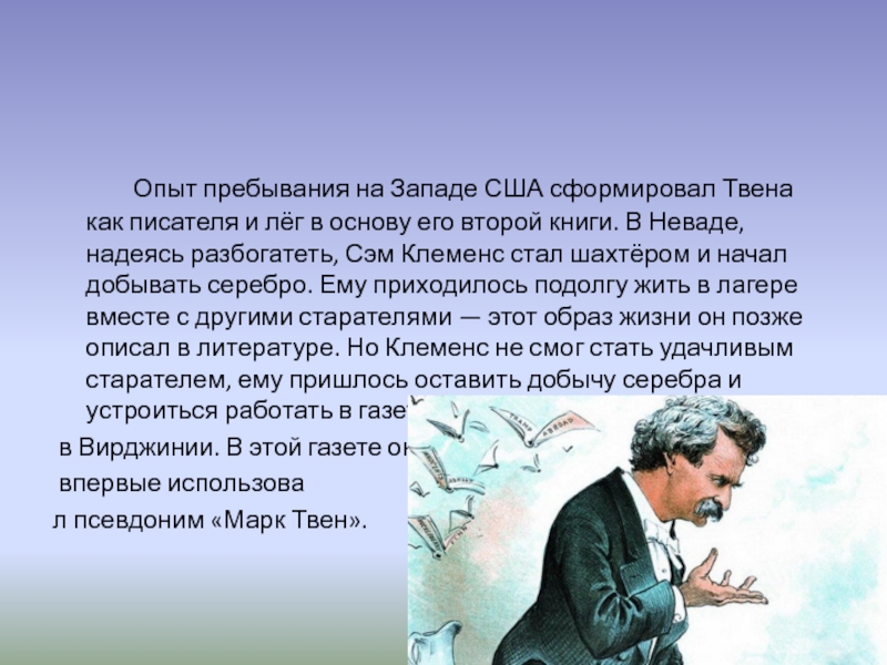 Слайд 23 Сэмюэль Клеменс, известный всему миру как Марк Твен,