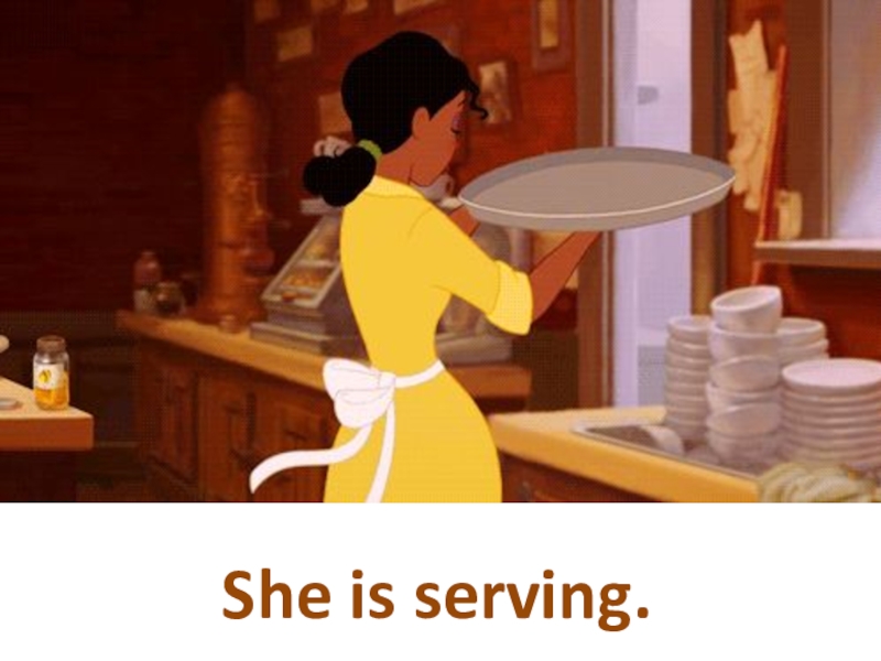 Слайд 19She is serving.