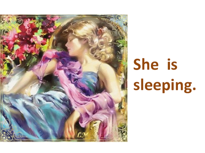 Слайд 3She is sleeping.