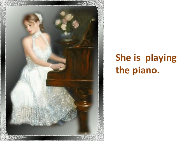 Слайд 2She is playing the piano.