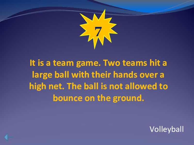 with their hands over a high net. The ball is not allowed to bounce on the ground.